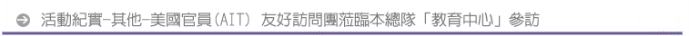 首頁 活動紀實 其他 美國官員(AIT) 友好訪問團蒞臨本總隊「教育中心」參訪