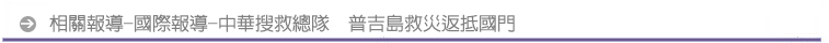 從國際媒體的畫面,可以看到穿著紅衣,來自台灣的中華搜救總隊,這一個禮拜來,中華搜救總隊不分畫夜在泰國普吉島進行搜救任務,面對宛如戰後屍首遍野的景象,搜救隊員很有耐心地毯式的搜救行動,也獲得國際間肯定。