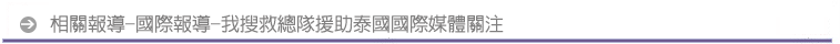 面對近代史上最慘的天災,各國派出全球陣容堅強的救難隊伍,台灣也不落人後,兵分二路前往印尼以及泰國災區進行搶救,美聯社透過鏡頭 首先向全球報導了台灣搜救隊伍的辛苦救援,身為國際一員,台灣參與國際社會的努力,受到國際媒體注意。