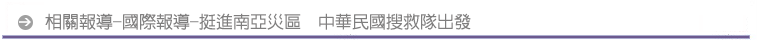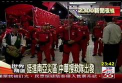南亞大地震,死亡人數目前至少超過3萬人,世界各國和國際救援組織也紛紛派遣救難隊前往救災,台灣的中華民國搜救總隊將在今晚出發前往救援。中華民國搜救總隊是國內第一批獲准進入南亞災區的隊伍,這次總共有38名成員,將前往受災最嚴重的地區,巴基斯坦的伊斯蘭馬巴德,這次主要是提供受災地區的後援補給,包括醫療物資和民生用品,一行人將會等到世界各國的救援工作,告一段落才會返台。