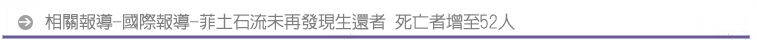 菲律賓雷伊泰省土石流災難,救難人員今天繼續搜救工作,但是挖出的只是更多具冰冷屍體,使得確認死亡人數增至五十二人。據救難人員表示,失蹤的一千多至三千名受困者,生還機會已經渺茫。