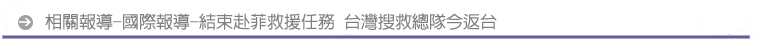 【大紀元227日報導】(中央社記者劉得倉中正機場二十七日電)菲律賓發生嚴重土石流災情、傷亡慘重,十九日由外交部長黃志芳授旗前往救援的台灣搜救總隊,今天結束任務返台,由外交部代表前往接機,搜救總隊長呂正宗說,雖然未能找到生還者,不過我們先進的救援設施和人道救援精神獲得許多國際救援隊伍情誼。
