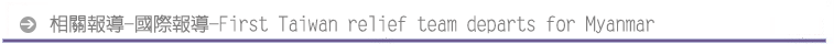 TAIPEI, Taiwan -- The first Taiwan relief team to obtain permission from the Myanmar military government to enter cyclone devastated areas departed for the southeastern Asian country yesterday.
