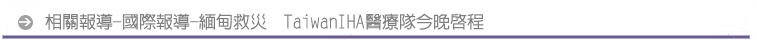 緬甸救災 TaiwanIHA醫療隊今晚啟程