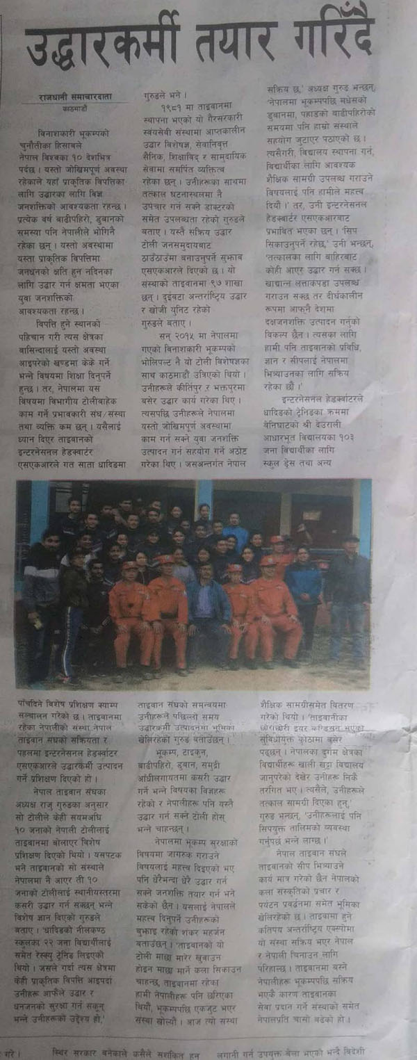台灣協助尼泊爾辦理基礎訓練及災地急救訓練